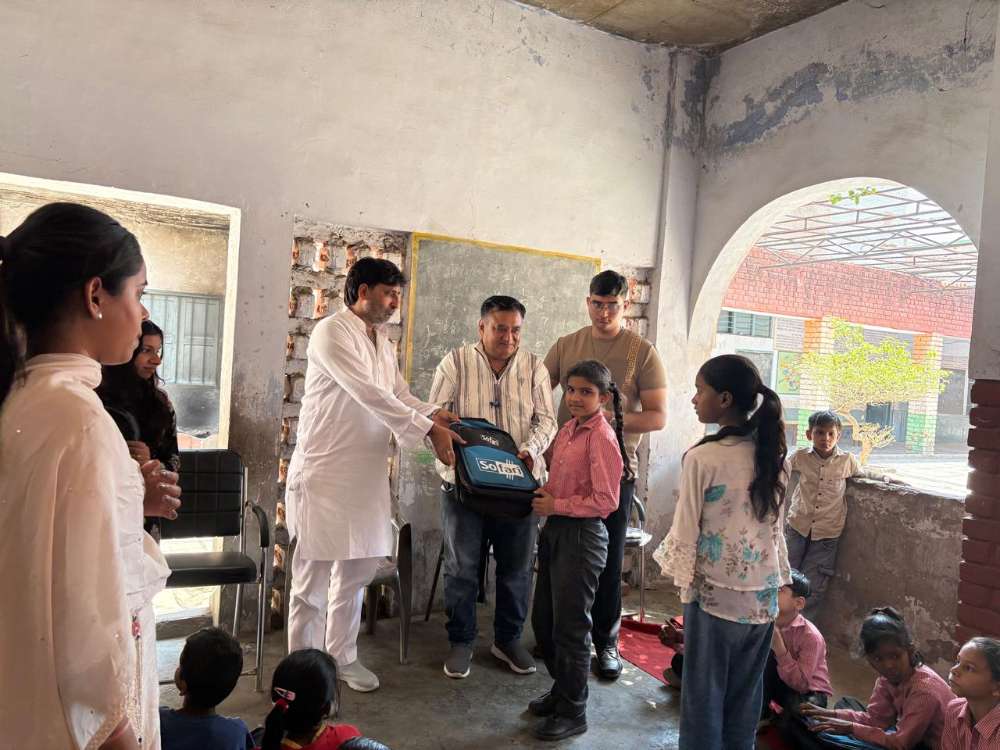डॉ. रामपाल और डॉ. माहीया ने जरूरतमंद विद्यार्थियों को स्कूल बैग और स्टेशनरी सामग्री दान की।